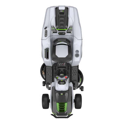 Ce tracteur de ramassage autoporté de 98 cm bénéficie d'un ramassage efficace de l'herbe dans un grand bac de ramassage arrière de 300 litres afin de maximiser les temps de coupe. Les tondeuses autoportées EGO offrent une puissance équivalente à celle d'un moteur à essence de 22 chevaux, tout en étant moins bruyantes et sans émissions polluantes.