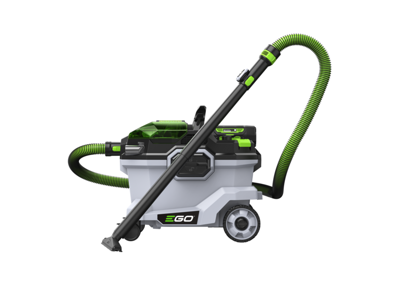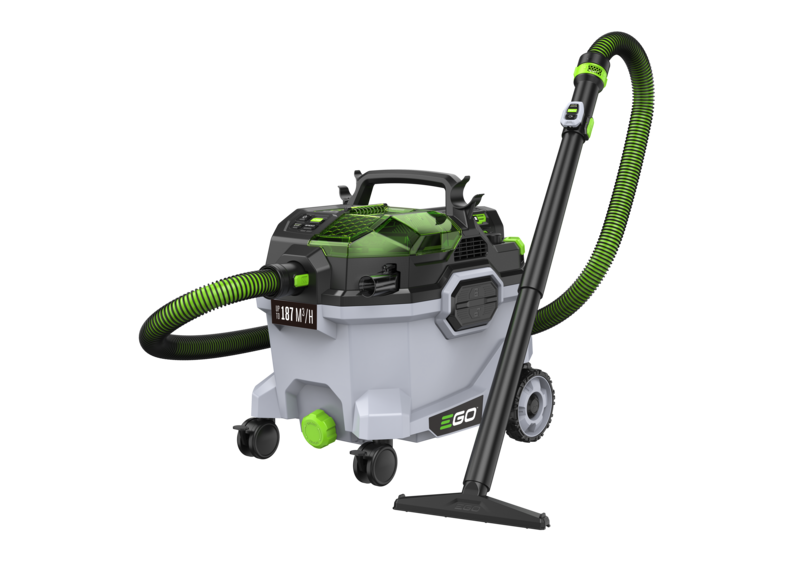 Il s'adapte aux exigences des tâches de nettoyage grâce à 3 modes de puissance, contrôlés du tableau de commande ou via la télécommande sans fil. L'autonomie de la batterie est de 60 minutes en mode éco, 33 minutes en mode élevé et 18 minutes en mode turbo, lorsqu'elle est alimentée par la batterie ARC Lithium™ 56 V 5 Ah d'EGO. Les espaces de rangement à bord son nombreux et offrent un espace pratique pour les buses, les rallonges et les tuyaux. Les accessoires comprennent deux tubes de rallonge, un suceur plat, un suceur à brosse ronde pour la poussière, un petit suceur de sol avec barre de brosse, un suceur large avec barre en caoutchouc et un tuyau de 2,1 mètres. Une fonction intégrée de nettoyage du filtre permet de maintenir des performances optimales.